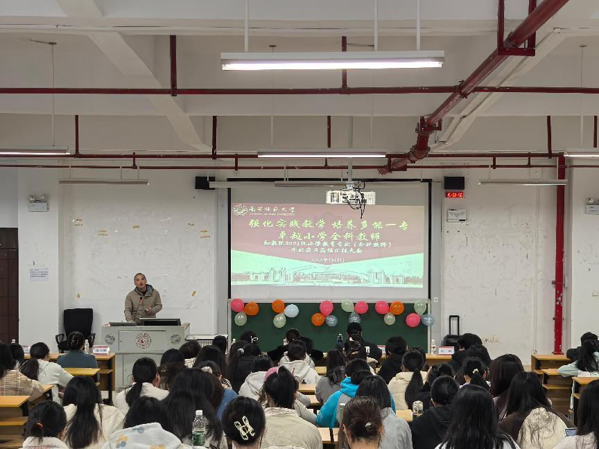 1月3日下午,必赢3003no1线路检测中心在五合校区文综楼401教室召开以“强化实践教学,培养多能一专卓越小学全科教师”为主题的2021级小学教育专业(全科)毕业实习总结大会。学院梁宇院长、苏学权副书记,全科系刘飖主任、陈陆健副主任,教学秘书潘小红、辅导员秦晴和李露露以及2021级全体全科学生参与会议。