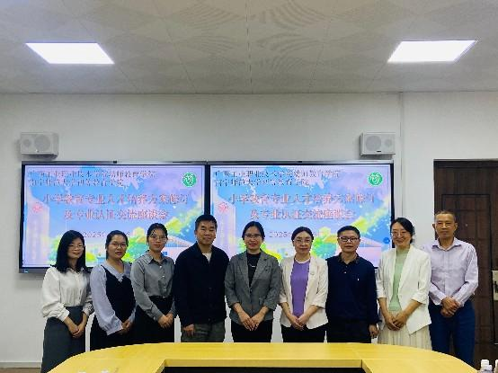 在交流会上,在林英副院长和梁宇院长分别介绍与会人员以及各自学院的基本情况后,双方分别就人才培养方案中课程的设置、基本功训练与考核、小学教育专业师范专业认证等相关事项开展了交流。期间,双方针对人培方案的课时安排、基本功考核训练与考核学分设置、社团参与等相关工作细节展开了深入的探讨和经验共享。此外,双方就专升本学生就读必赢3003no1线路检测中心的培养情况等事项进行交流。