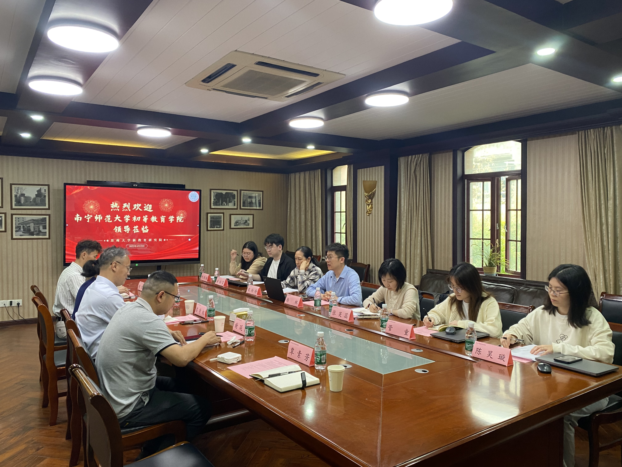苏州大学教育学院分享了其党建引领学生工作的具体举措,介绍了榜样工程典型示范教育体系、“E心向党”四维培养体系、团委学生会与社团组织改革等特色做法。与会双方还围绕朱永新教授“新教育”思想的核心内涵与当代价值展开了深入研讨,就如何将先进教育思想融入高校育人实践进行了充分交流。