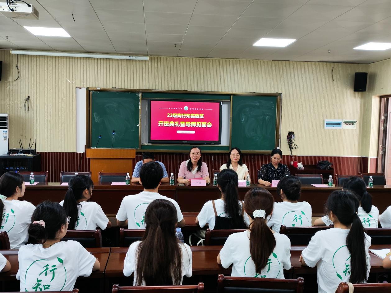 活动首先由梁宇院长致辞。梁宇院长对23级同学们成功入选陶行知实验班表示祝贺,并简要回顾了小学教育专业陶行知实验班的办学成就,希望同学们在导师团队的带领下,以优秀的学长学姐为榜样,求真务实,守正创新,进一步打造陶行知实验班的卓越品牌。梁秀清副院长也对23陶的同学们提出了殷切希望。