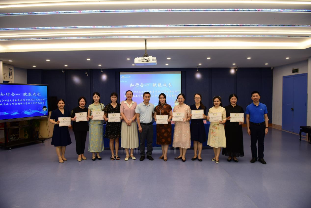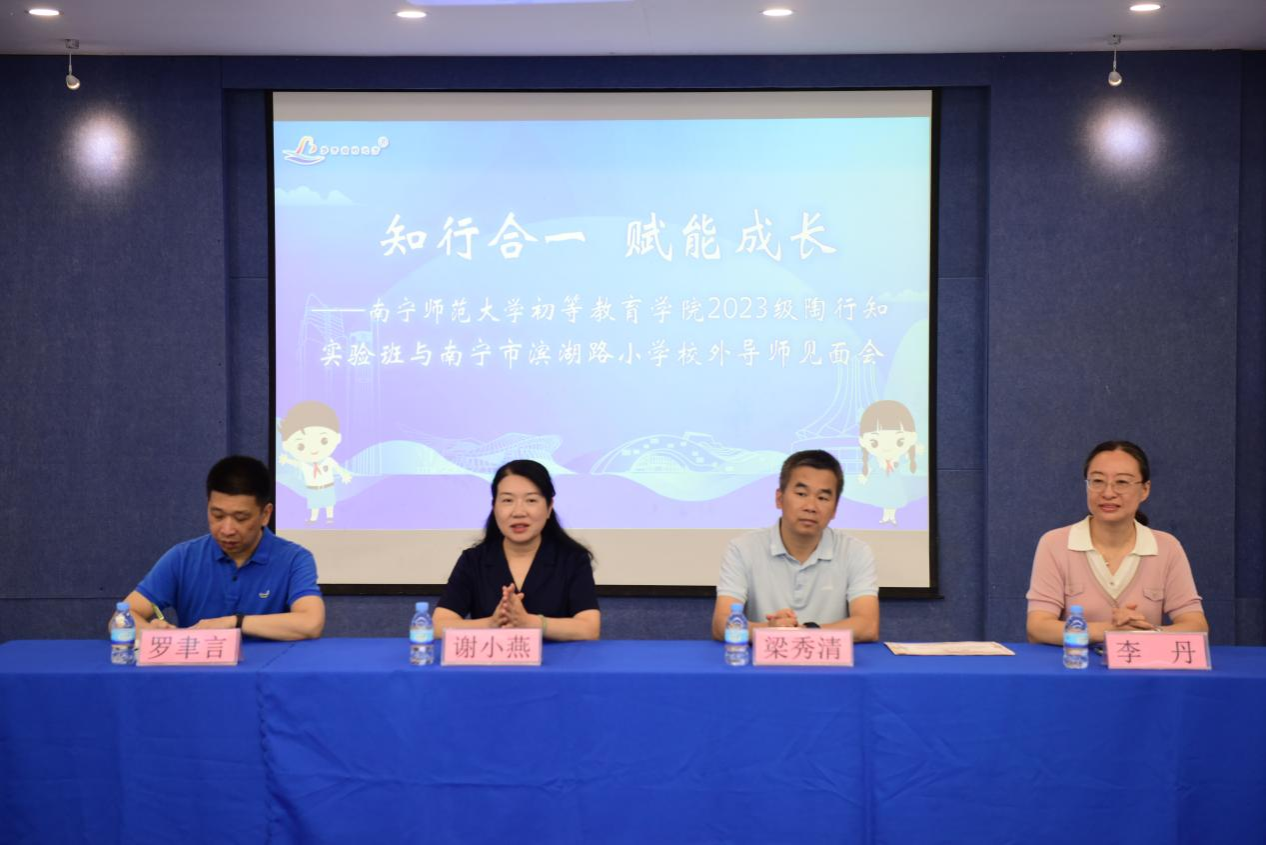 6月16日上午,必赢3003no1线路检测中心2023级陶行知实验班校外导师见面会在南宁市滨湖路小学会议室举行。南宁市滨湖路小学校长谢小燕、必赢3003no1线路检测中心副院长梁秀清、陶行知实验班负责人李丹、2023级陶行知实验班班主任罗聿言、南宁市滨湖路小学10位校外导师以及2023级陶行知实验班全体学生参加了见面会。见面会由南宁市滨湖路小学老师、必赢3003no1线路检测中心校友徐晨晨主持。