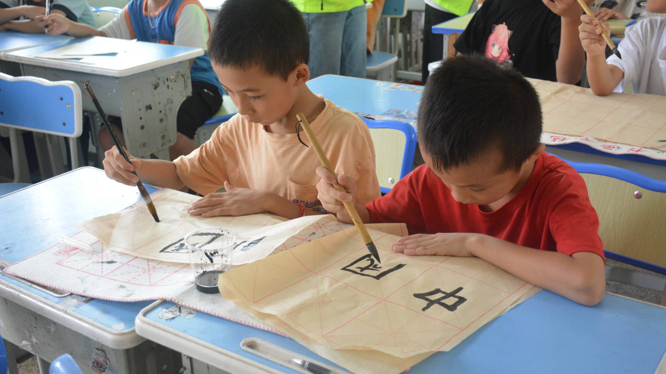 “笔墨绘山河,童心向祖国”书画创作活动将爱国主义教育推向高潮。实践队员通过讲述戍边英雄的感人故事,展示祖国壮美山河的影像资料,激发孩子们的创作灵感。小朋友们或写下“中国”“我爱我的祖国”等饱含深情的文字,或用画笔勾勒边防战士的英姿、描绘祖国的秀丽风光。一幅幅充满童真的书画作品,展现了孩子们对祖国的真挚情感。