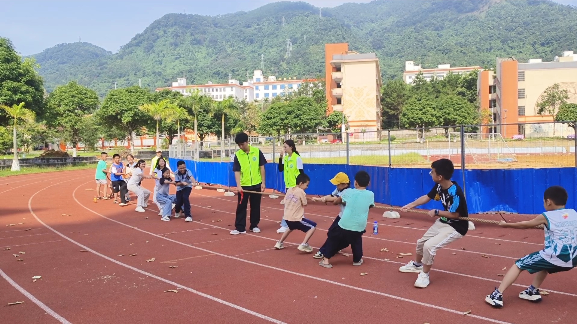 本次运动会将传统民俗与现代趣味相结合,设置了多个特色竞技项目,既有考验协作能力的纸板运乒乓球、背夹气球,也有锻炼精细动作的筷夹乒乓球,还有展现团队默契的长绳集体跳和富有民族特色的三人板鞋。活动中,孩子们与实践队员们分组竞技,在纸板运乒乓球项目中巧妙传递、默契配合;三人板鞋比赛里,大家喊着口号同步前行,加油声、欢笑声此起彼伏,整个校园洋溢着欢乐的氛围。