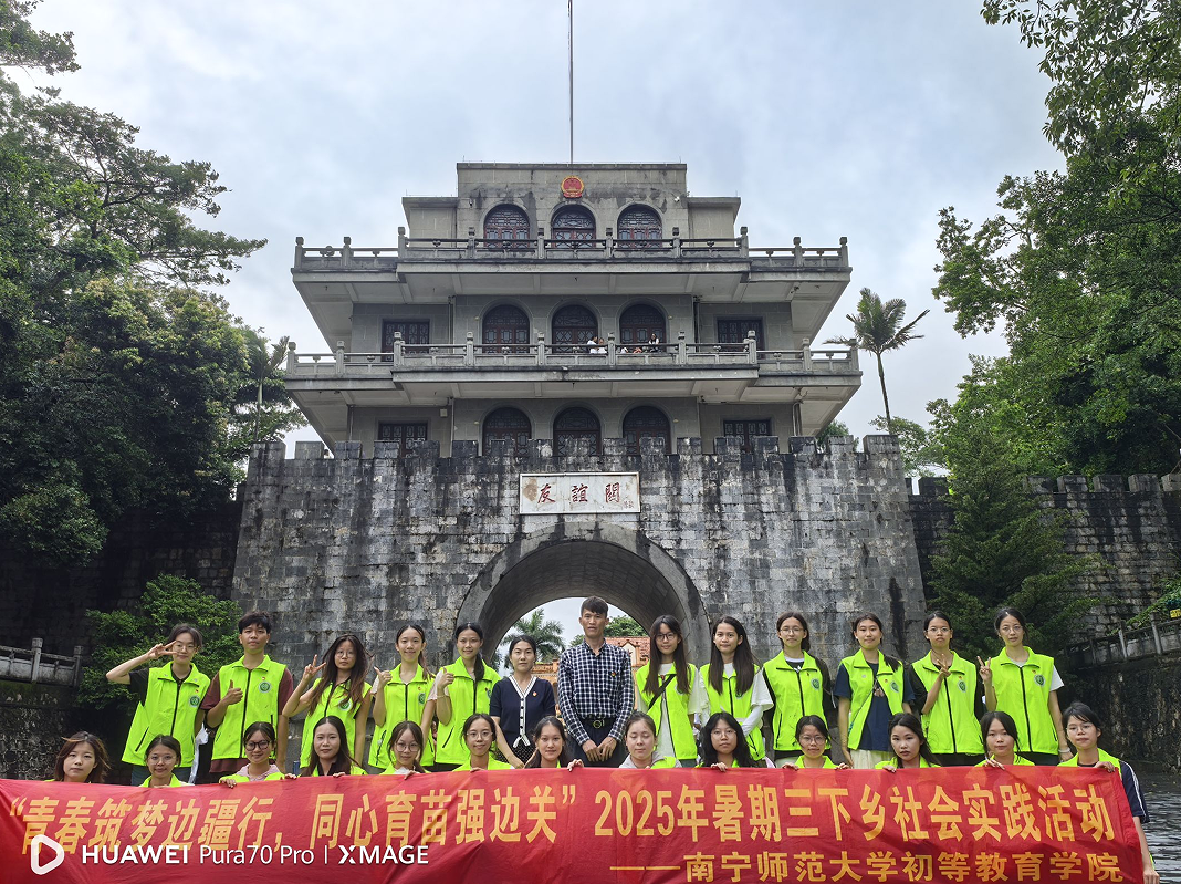实践队28名师生党团员先后参观了关楼、历史长廊、法式楼、冯子材雕像、民族团结广场等。在巍峨的关楼下,队员们触摸斑驳的古城墙,感受历史的厚重;在历史长廊中,大家驻足凝视珍贵史料,热烈讨论中法战争、镇南关起义等重大历史事件;在冯子材雕像前,全体成员肃立致敬,追忆南关大捷中的民族英雄。一个个历史场景让队员们深刻感悟到“南疆国门”所承载的爱国精神和民族气节。