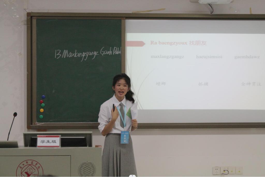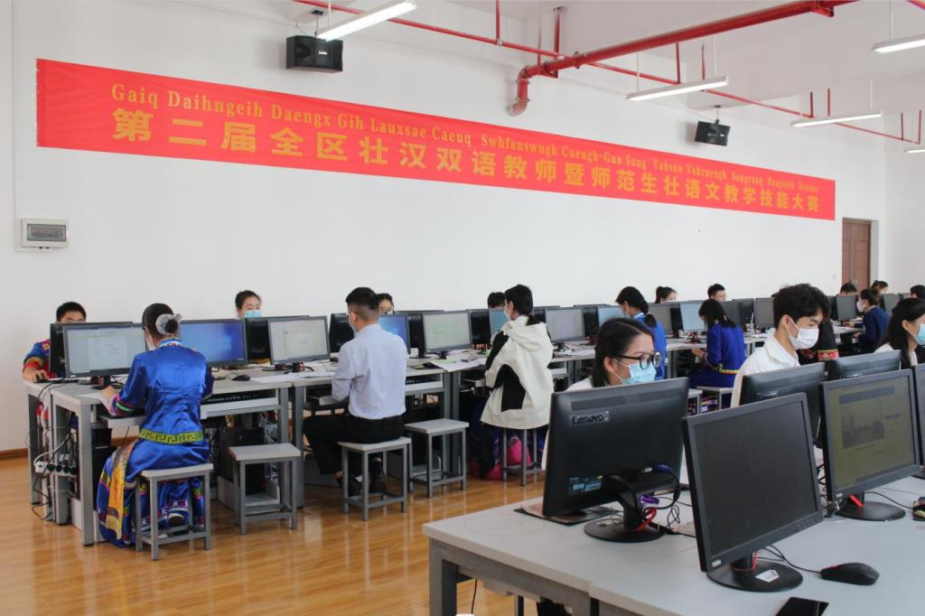 本次大赛分为教师组和学生组,共有87名选手参赛。其中教师组为全区36个市(县、区)的59所小学共67名壮汉双语教师,学生组为南宁师范大学和广西民族师范学院2所高校的20名小学教育专业(壮汉双语方向)公费定向师范生。比赛分为“教学设计”以及“模拟上课和板书设计”两个环节,特设线上教师组给因疫情无法参与线下比赛的教师顺利参赛。担任评委的是有着丰富教学和研究经验的大中小学一线优秀壮汉双语教师及壮汉双语教研员。