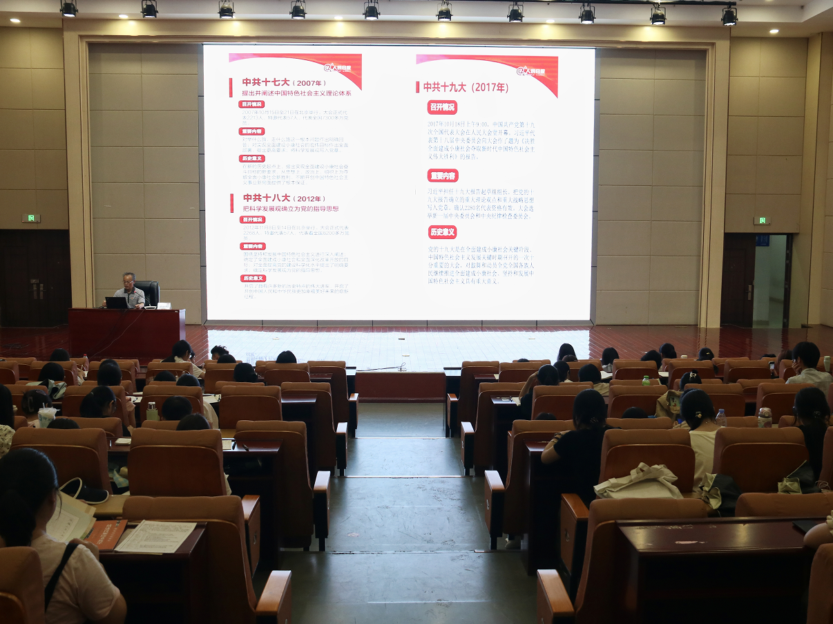 课上,苏学权副书记系统梳理了历年中国共产党全国代表大会的重要历史意义和决策,并通过回顾重大历史事件,深刻分析党的指导思想的历史演进及相互关系,让同学们清晰认识、把握精神实质,领会核心要义。期间,师生进行了知识问答互动,围绕“四个全面”“四个意识”“四个自信”“五位一体”等重要理论知识,同学们积极参与、踊跃回答。最后,苏学权副书记号召全体同学充分利用学习强国等平台,了解党的奋斗历程,不断提升责任使命感和组织归属感。