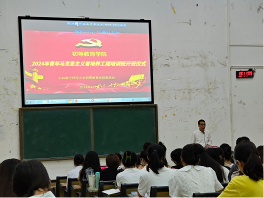 6月3日晚,必赢3003no1线路检测中心2024年“青年马克思主义者培养工程”培训班在五合校区五综308教室举行开班仪式暨开班第一讲。学院党委书记陆以宏出席仪式并作第一讲专题培训。仪式由学院党委组织员何聪主持,学院辅导员与2024年“青马班”学员参加了仪式与培训。